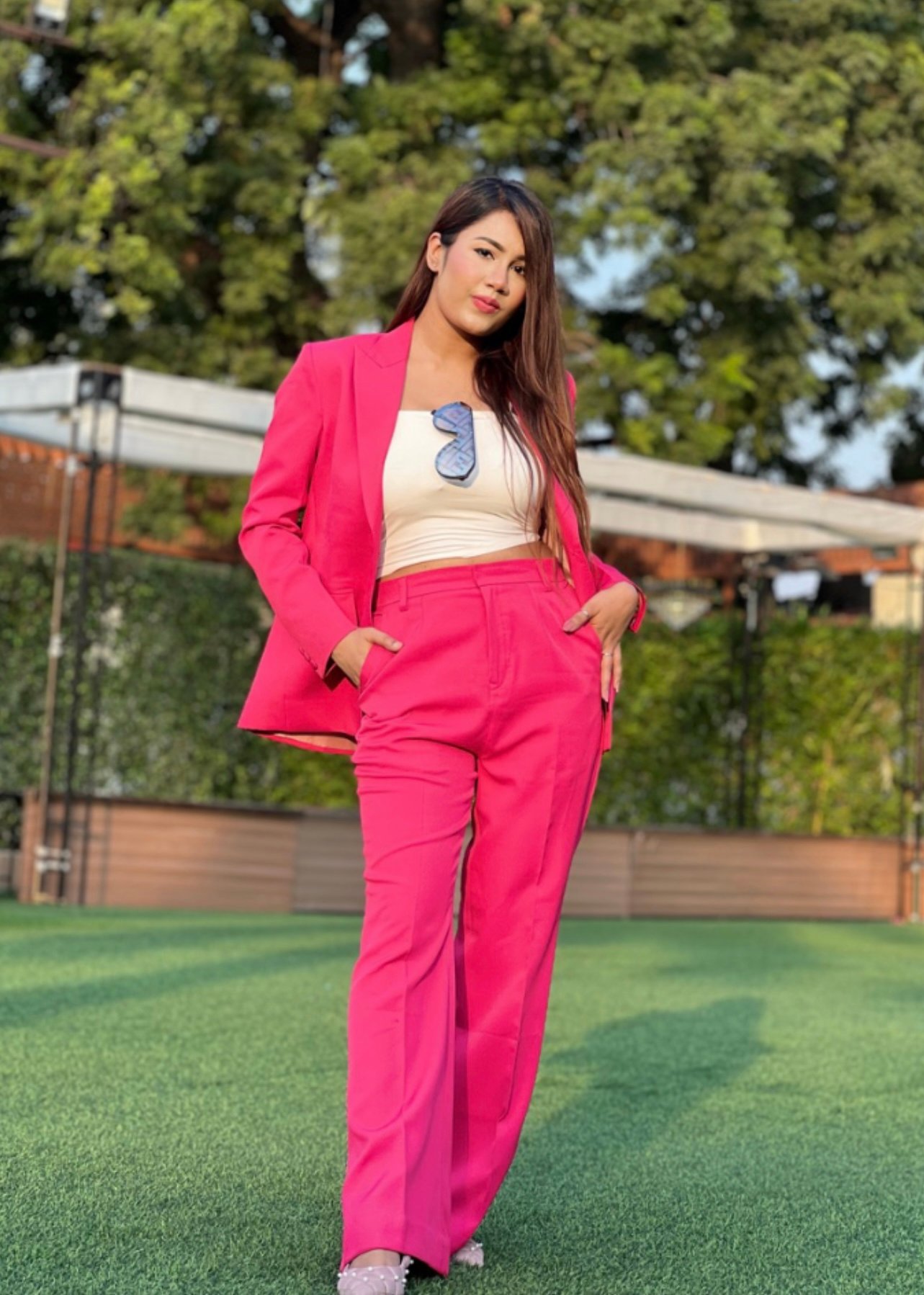 Fuchsia Cropped Blazer & Pant Suit