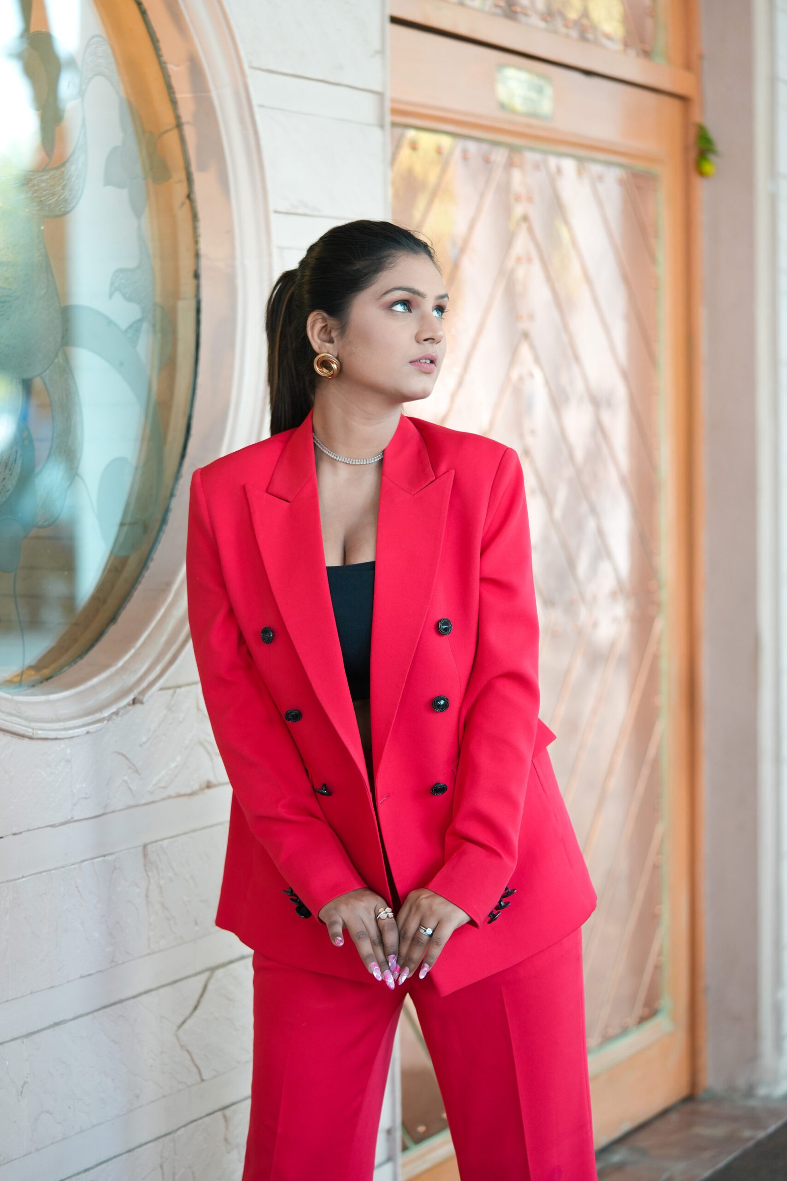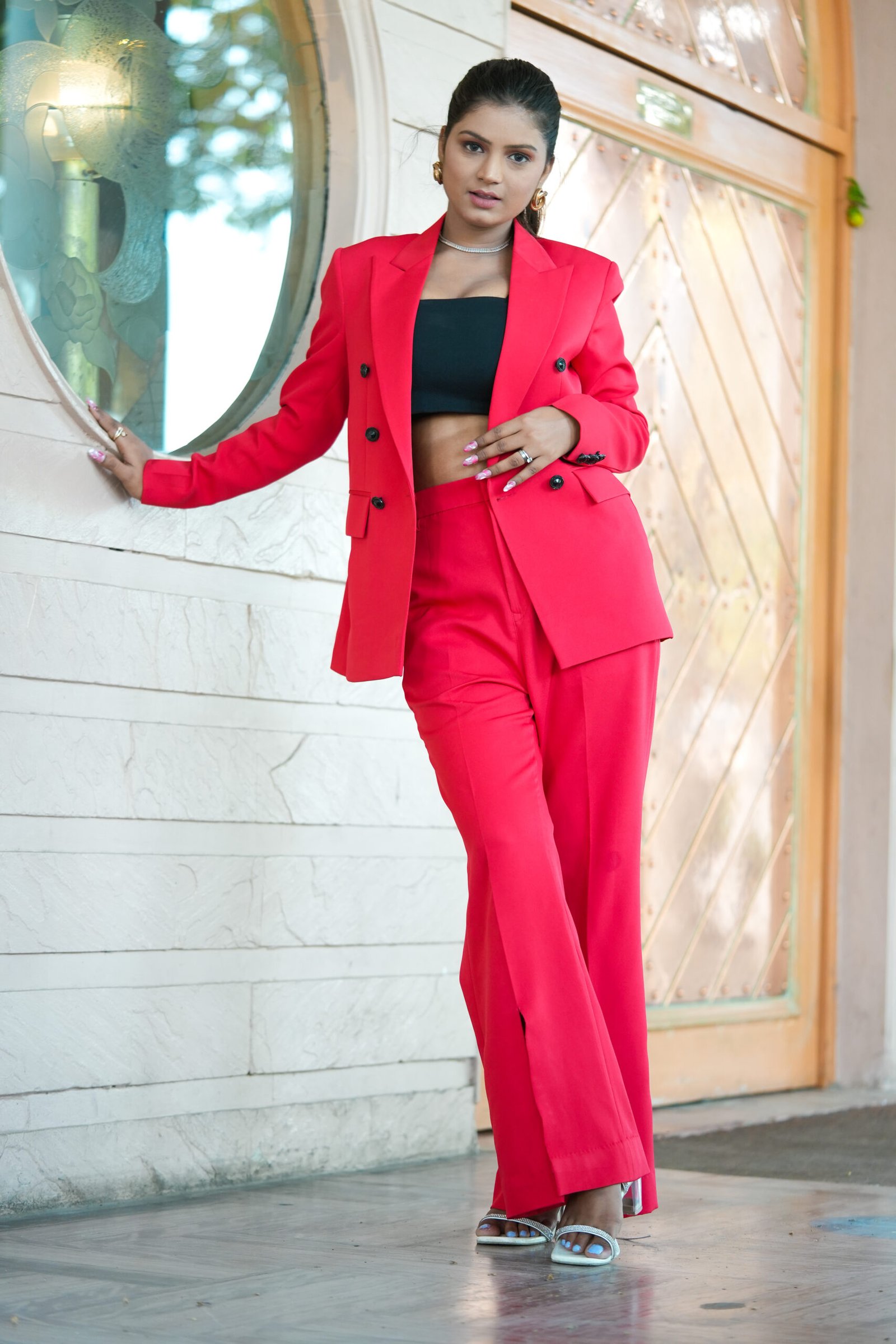 Home Blazer Pant Red Double Breasted Blazer-Pant Suit